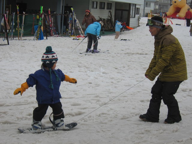 ユウトくんはひるがので初スノーボード体験!パパとリード付きボードで一緒に滑りました★
