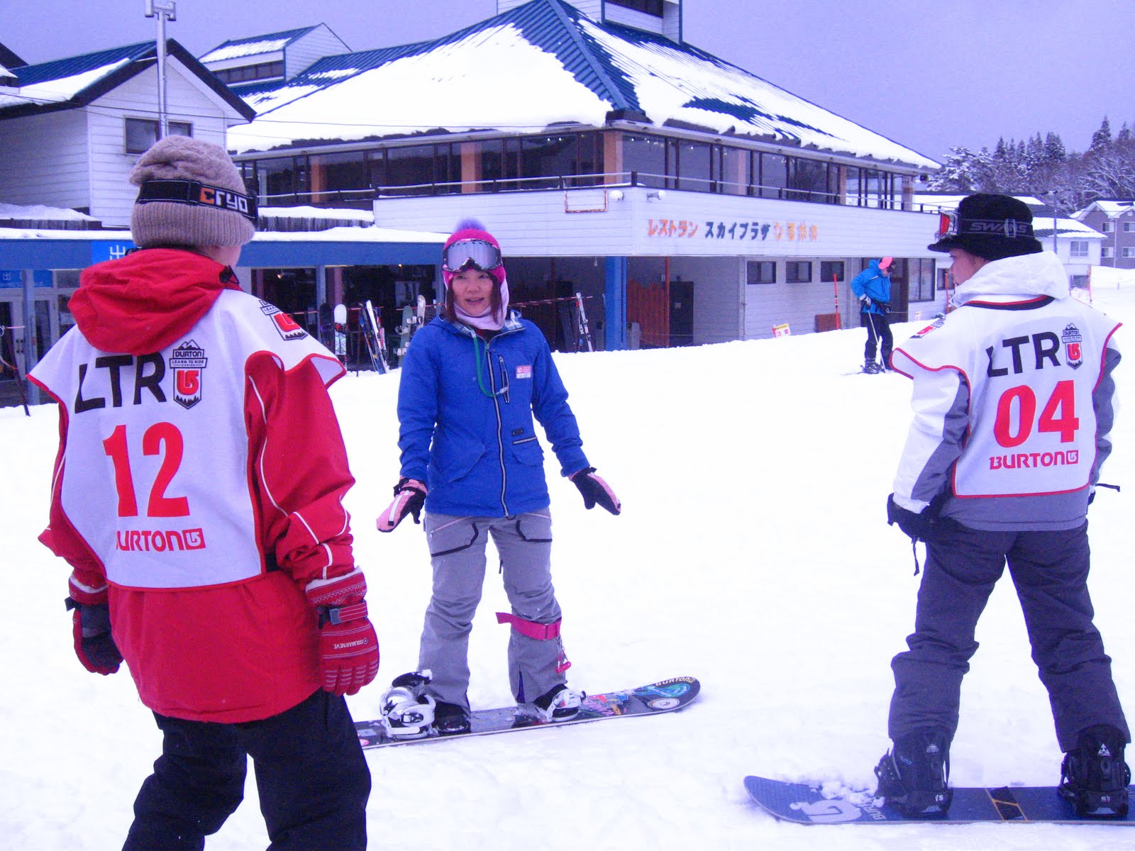 ゼッケン12は昨日から引き続きでイトウ ユキノちゃん、ゼッケン4は本日2回目のスノーボードだったオカダ マユちゃん。二人ともなかなかのセンスの持ち主でした!!!
